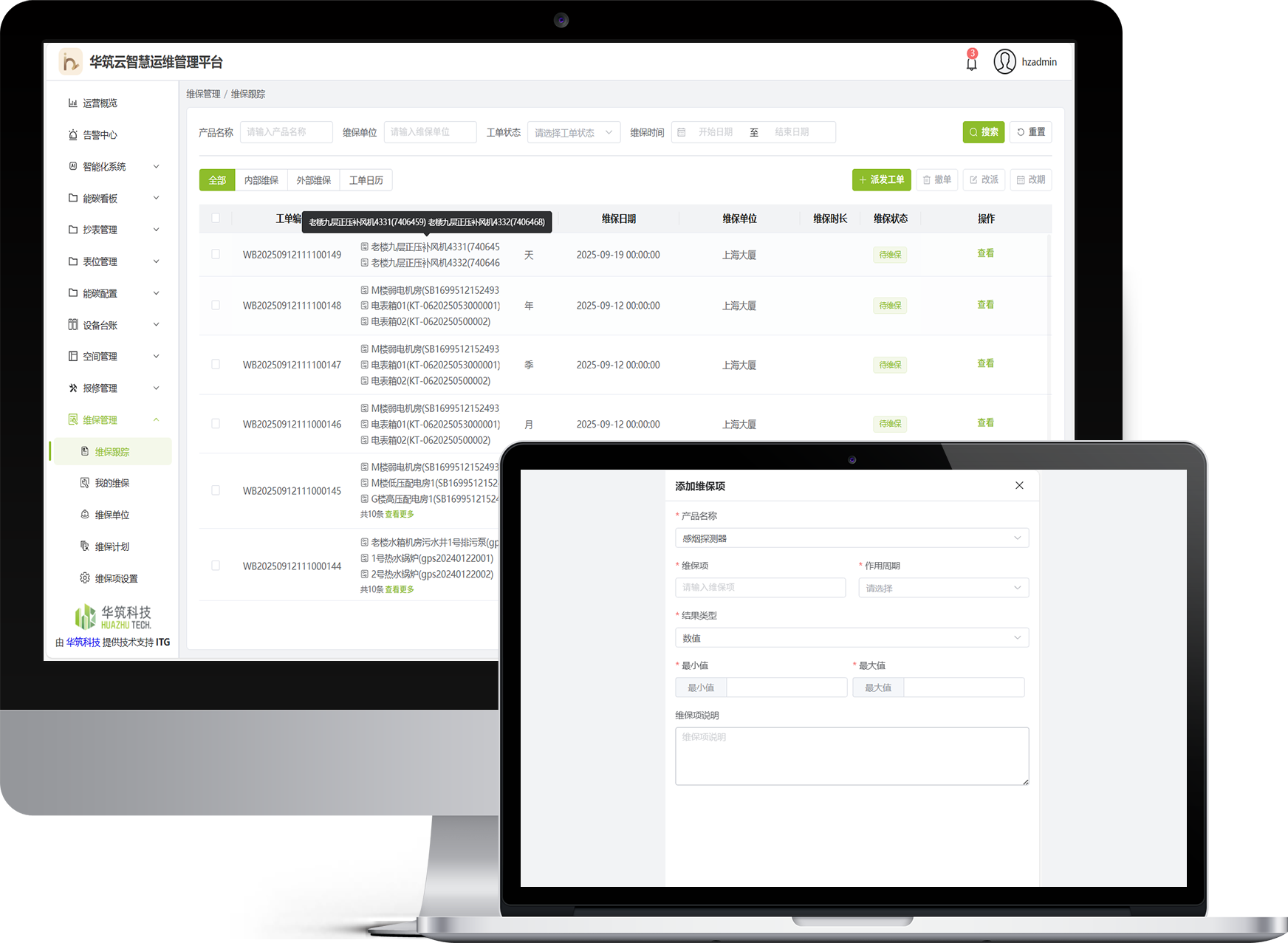 覆蓋報修、處理、驗收、返修的閉環(huán)流程;維保、巡檢、設(shè)備檔案一體化;