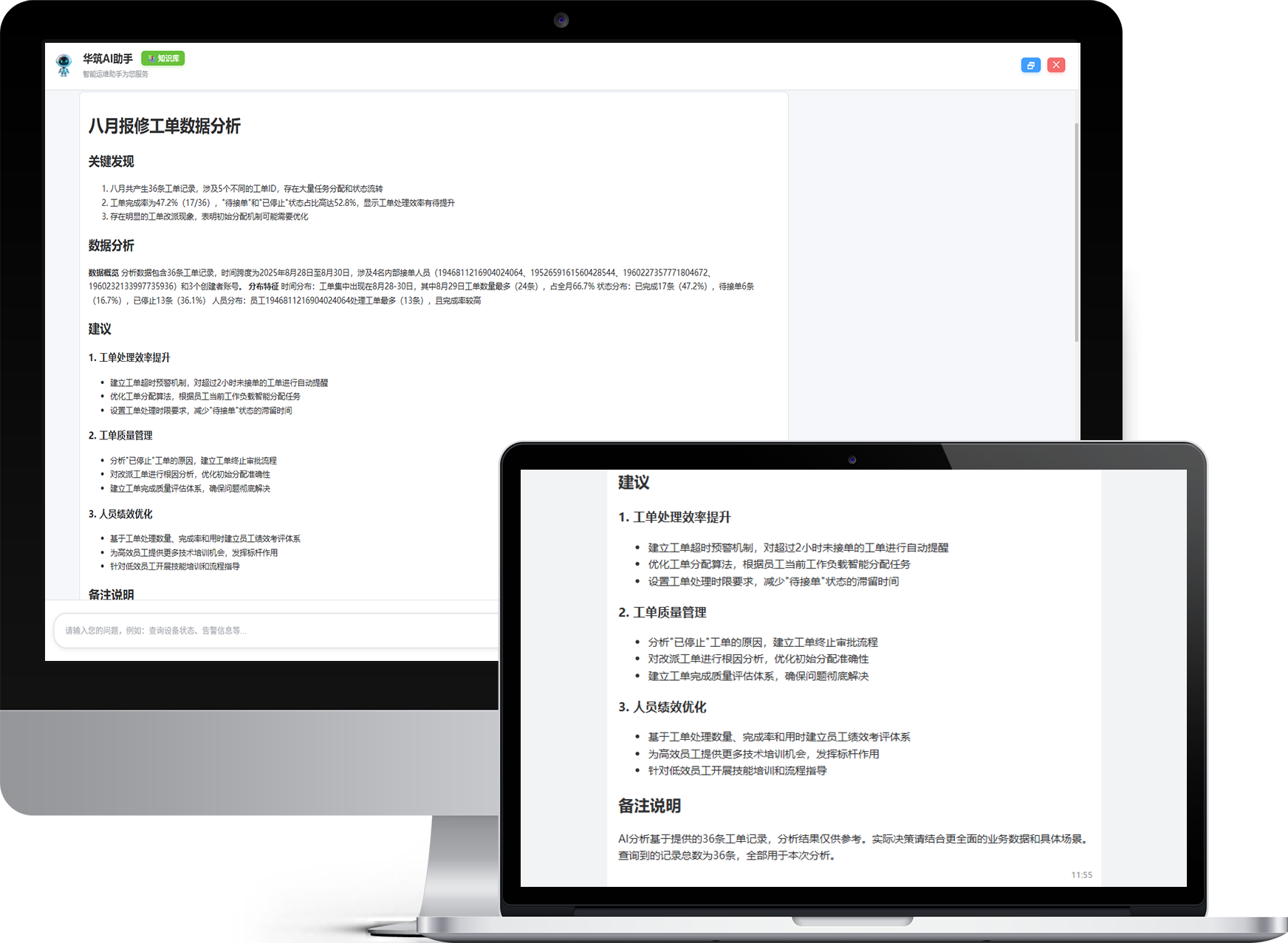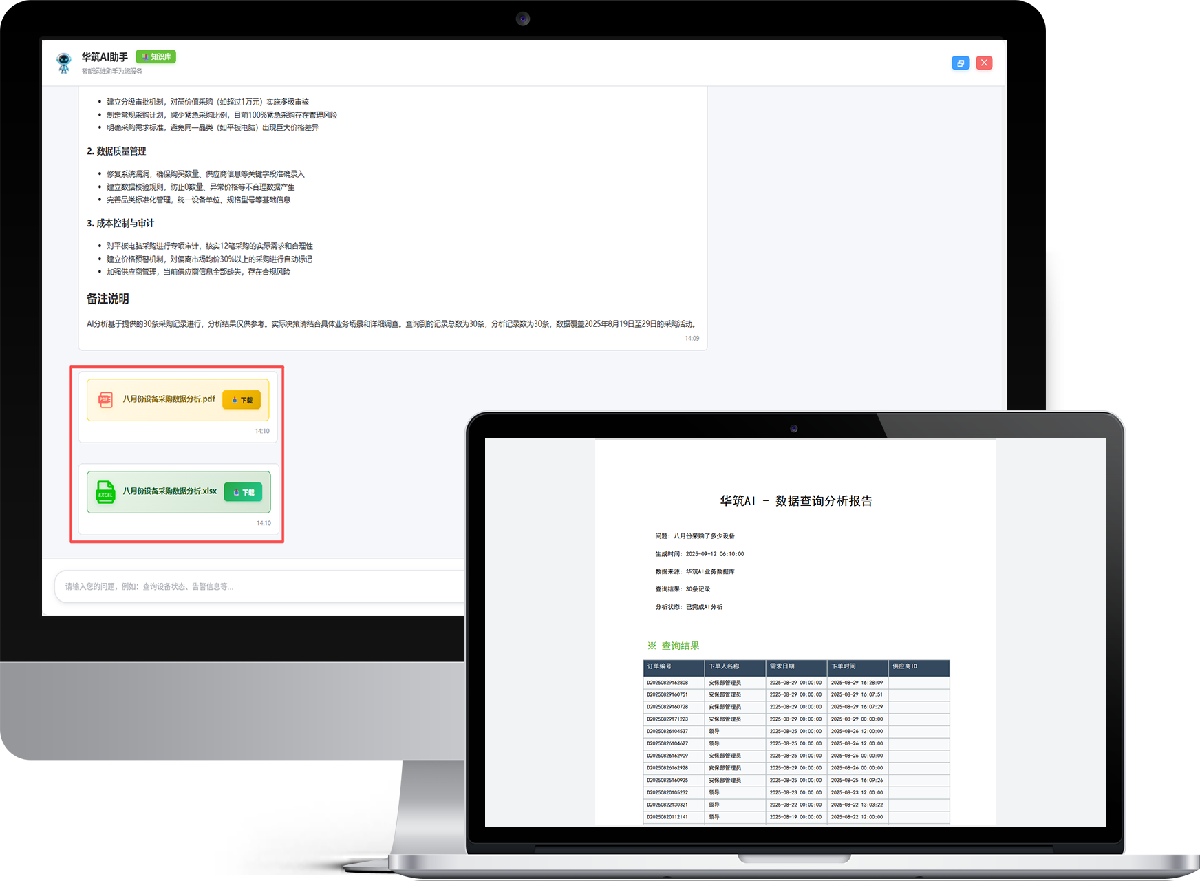 查看詳情系統(tǒng)支持AI生成多類型可視化圖表(趨勢圖、餅圖、對比圖),支持一鍵導出,滿足管理層分析需求。