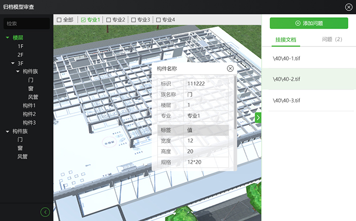 (2)搭建BIM檔案管理生態(tài)平臺(tái),針對(duì)BIM檔案的報(bào)送、審核、審批、保管、利用的全過程生態(tài)閉環(huán),結(jié)合GIS技術(shù)和BIM技術(shù),實(shí)現(xiàn)BIM模型在平臺(tái)上的接收、展現(xiàn)、保管和使用,并關(guān)聯(lián)模型與檔案,便于檔案的查找、利用和全生命周期動(dòng)態(tài)保管,創(chuàng)建檔案與檔案、時(shí)間、空間的關(guān)聯(lián)關(guān)系。